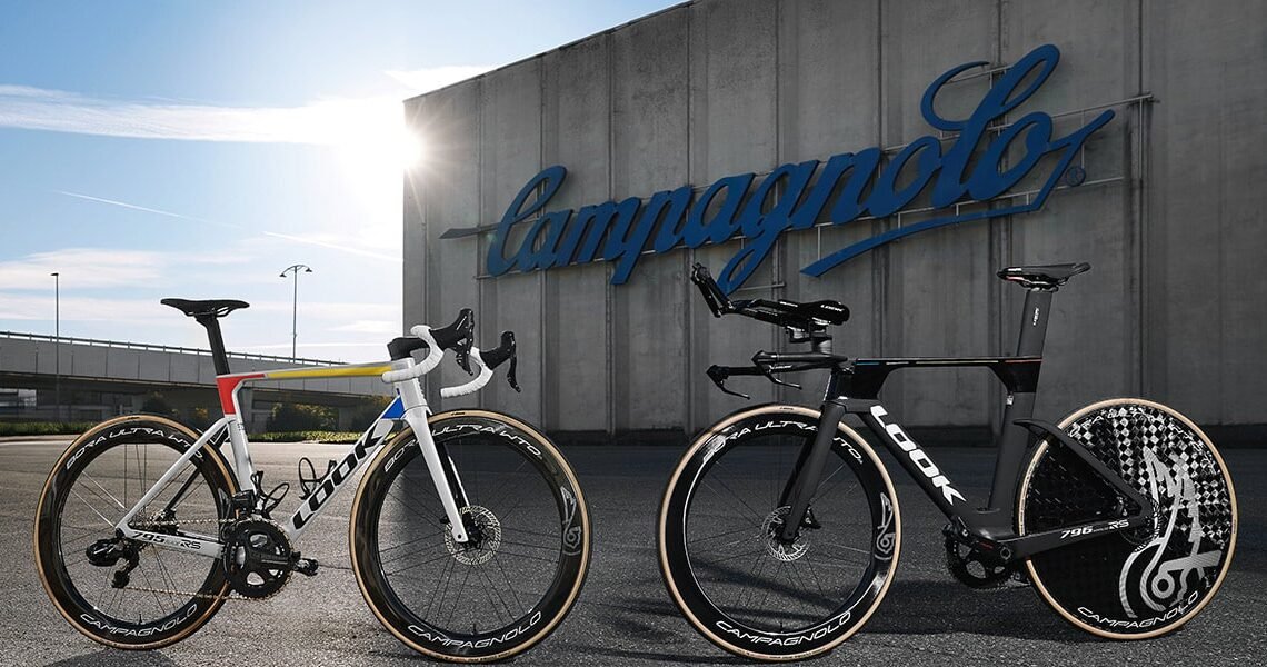 The Campagnolo components featured on the LOOK bikes.