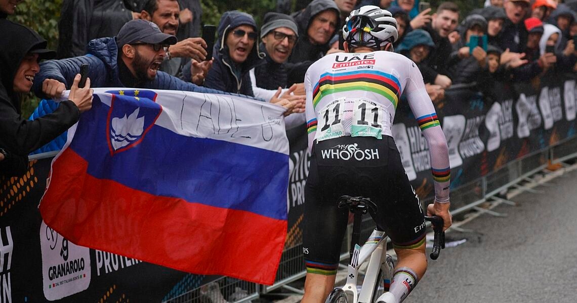 Tadej Pogačar won his first race as World champion. The Slovenian attacked with around 40 kilometres to go in the Giro dell’Emilia and was not seen again by the peloton until the finish. Tom Pidcock (INEOS Grenadiers) was second and Davide Piganzoli (Polti Kometa) third.