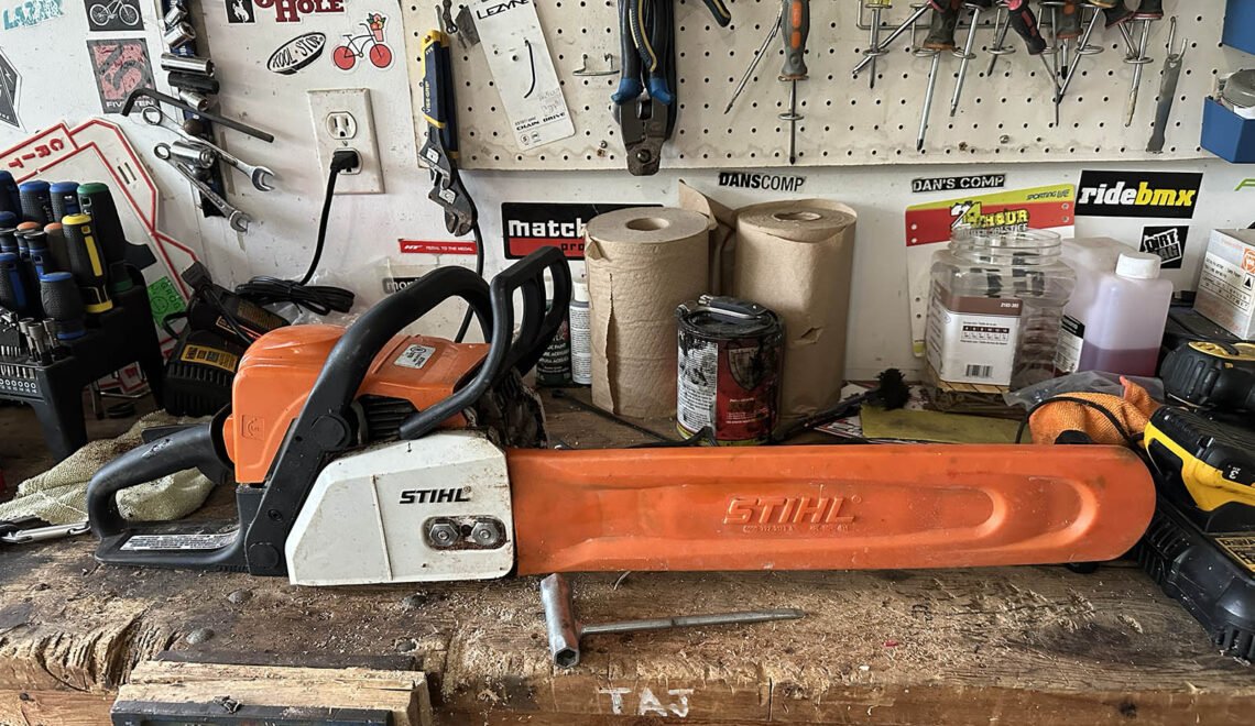 Keeping both the bar oil and the mixed fuel reservoirs topped up is key to a dependable chainsaw. But if you’ve got no bar on the tool, do you need bar oil? “Nah it’ll just puke oil all over the place,” says Due North Custom Carpentry’s Adam Burk. “No bar means no bar oil.”  Obvious, but now you know for sure. If you can figure a good way to drain the bar oil reservoir let us know.