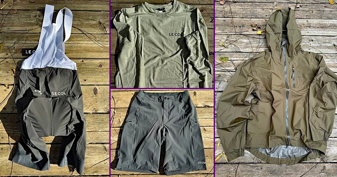 Le Col enters the gravel file with its ARC Collection. We tested out their lightweight rain jacket, merino wool longsleeve jersey, cargo bib shorts, and overshorts.