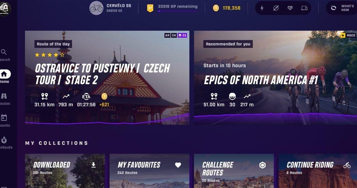 Recently Rouvy made major changes to the user interface, making it much more attractive and easy enough to navigate, considering how much there is to do in this Virtual World. Users on the home page see which bike they are using, their rider level, recommended rides, rides to finish, challenge routes and some workouts as well. The workouts are a recent addition and while I have tried them I prefer using a different app which is more training-specific. There is also a good search function that lets you pick rides based on distance, elevation gain, or region, among other factors.