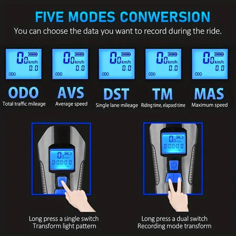 Take your cycling to the next level with our Waterproof Rechargeable Bike Light. Track your speed and distance with ease while ensuring your path is brightly lit, enhancing both safety and enjoyment on every ride.