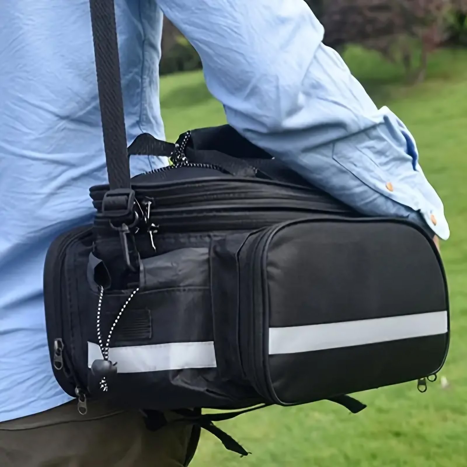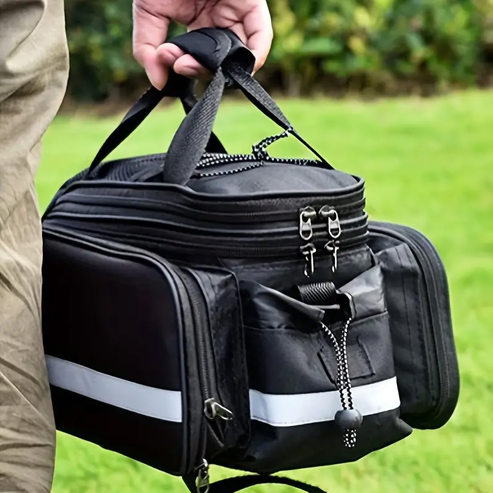- Secure Attachment: The bag easily attaches to your bike’s rear seat with secure straps or mounting systems, providing a stable and reliable fit that keeps your items safe and easily accessible during your ride.